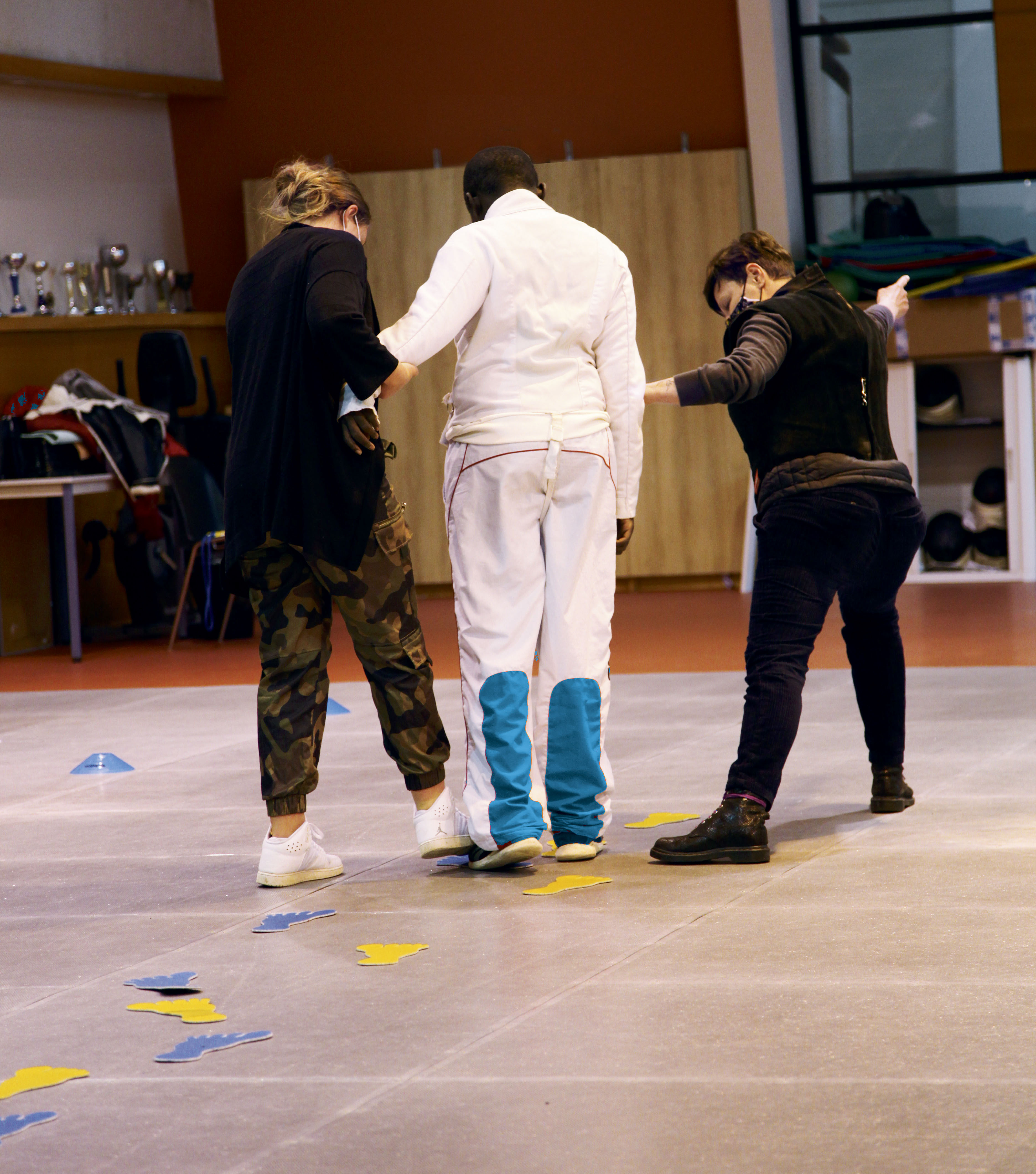 Les exercices d’escrime sont construits spécifiquement en collaboration avec les équipes pluridisciplinaires des institutions qui travaillent avec Carol Broca Wander.